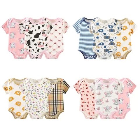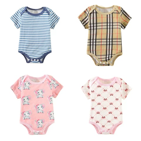 Mameluco de bebé de manga corta con estampado de recién nacido para niños y niñas al por mayor de fábrica